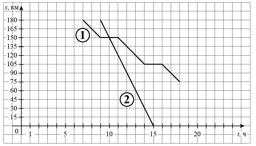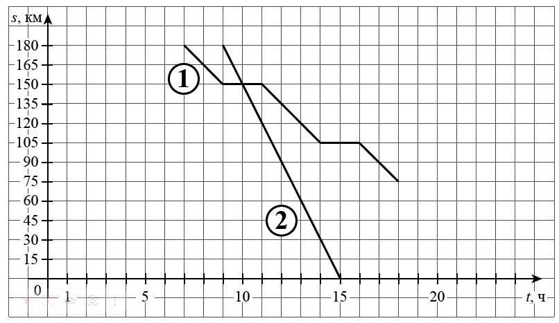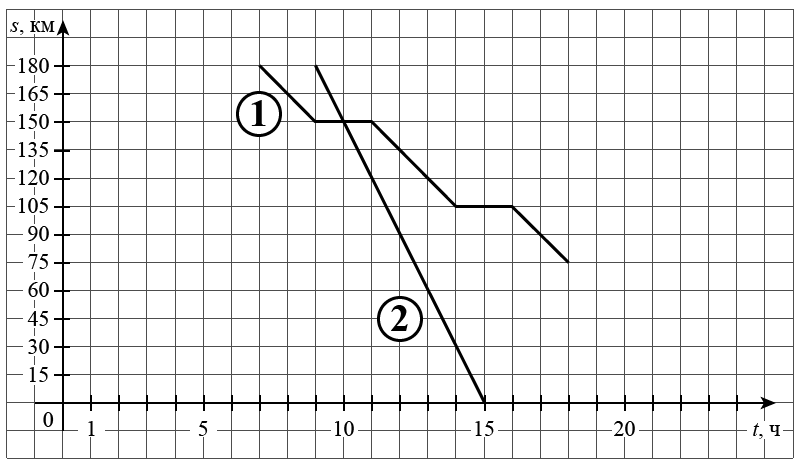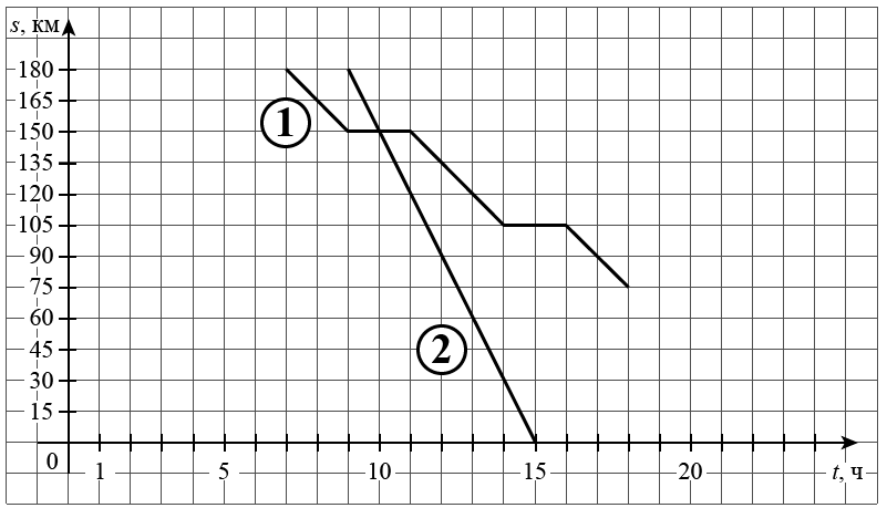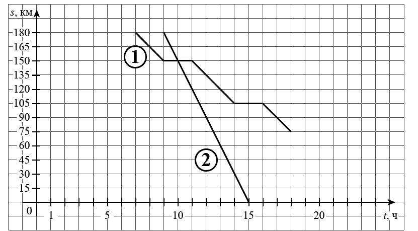 На рисунке график движения велосипедиста обозначен цифрой 1, график движения автобуса обозначен цифрой 2 и приведён не полностью.