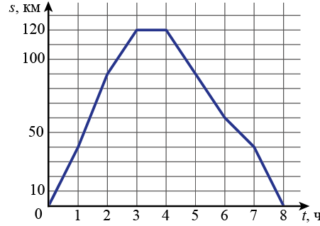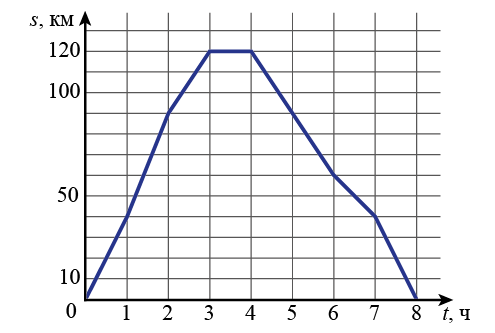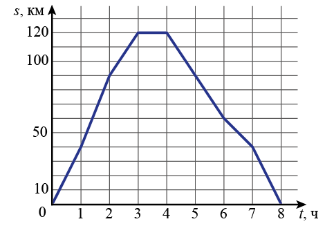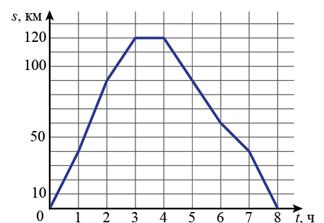 Задание 4. Населённые пункты А и Б соединены прямым шоссе. Автобус выехал из пункта А в пункт Б, 1 час провёл в пункте Б, а затем вернулся в пункт А. График показывает расстояние от пункта А до автобуса в каждый момент времени. Расстояние измеряется в километрах, время – в часах.