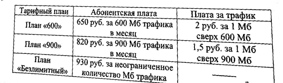 Задание 5. В квартире планируется подключить интернет. Предполагается, что трафик составит 650 Мб в месяц, и исходя из этого выбирается наиболее дешёвый вариант. Интернет-провайдер предлагает три тарифных плана.