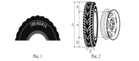 Для маркировки автомобильных шин применяется единая система обозначений. Например, 195/65 R15 (рис. 1).