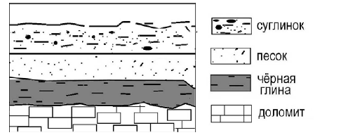 Задание 8. Во время экскурсии учащиеся сделали схематическую зарисовку залегания горных пород на обрыве в карьере.