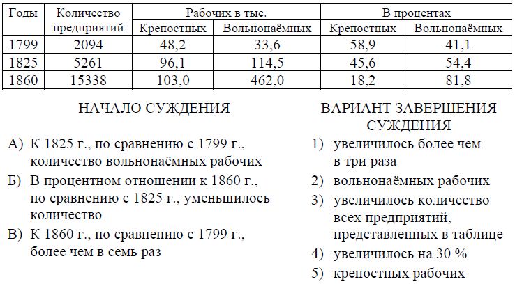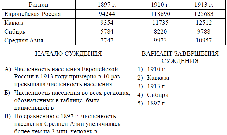 Задание 7. Используя данные статистической таблицы, завершите представленные ниже суждения, соотнеся их начала и варианты завершения.