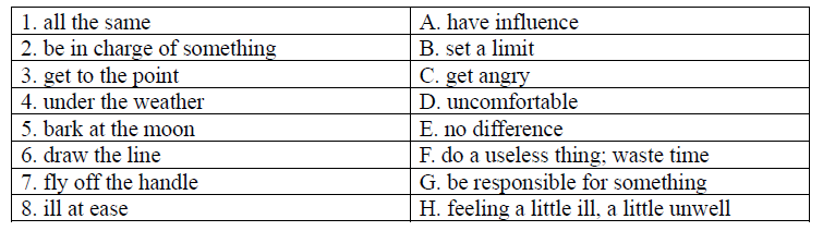 Задание 5. For items 1-8 match the idioms with their meanings. There is one extra meaning you are not to use.